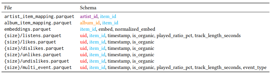 - Yambda-5B는 1백만 명의 사용자로부터 939만 개 트랙에 걸쳐 약 47억 9천만 건의 User-Item 상호작용 데이터를 포함
